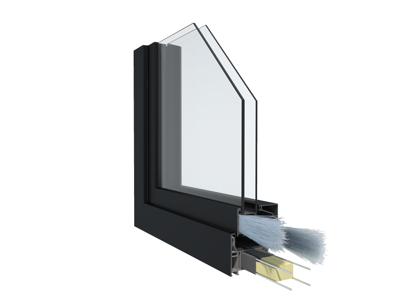 - 3e joint d’étanchéité et 5 chambres sur un dormant de 76 mm par rapport à l’ancienne gamme Design 82 où nous avions 6 chambres sur un ouvrant 82 mm et 5 chambres sur un dormant